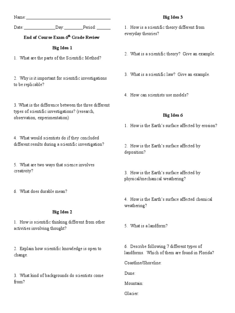 7th grade science final exam questions